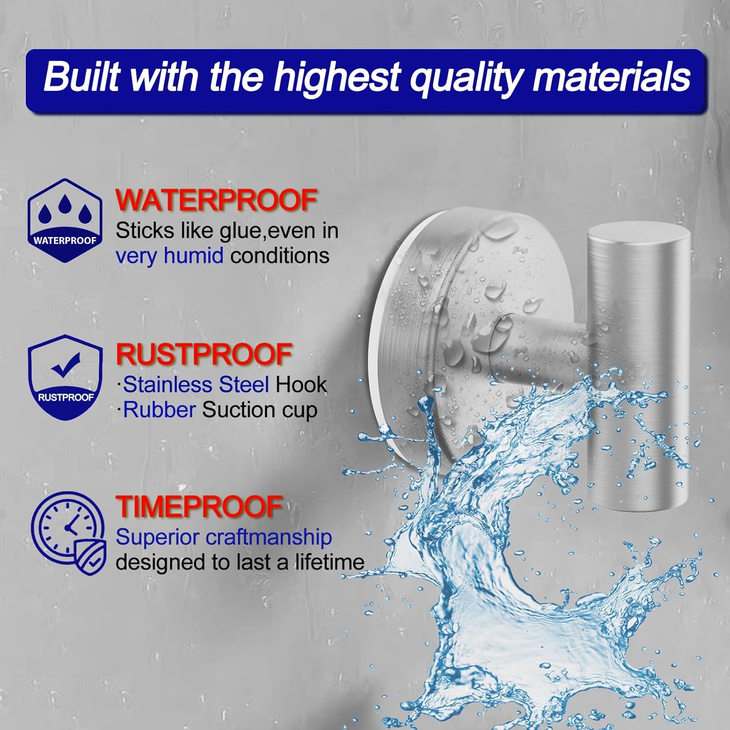 • [​Shower-Safe & Rustproof]: Stainless steel ​shower hooks + super silicone suction base withstand daily steam/water splashes. Removable without residue - ideal for renters' ​towel hook needs.