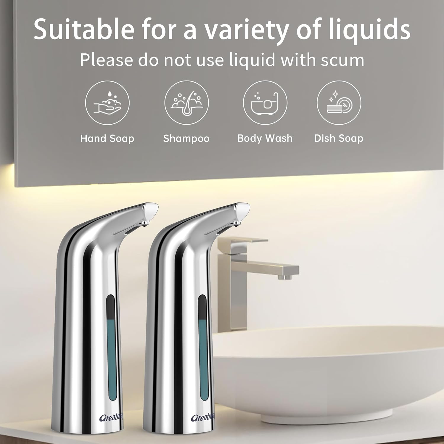 Convenient Automatic Soap Dispenser,4 Adjustable Levels Touchless Hand Sanitizer Pump with Infrared Sensor, 400 ml Countertop Electric Soap Dispenser for Bathroom,Kitchen (Silver+Silver)