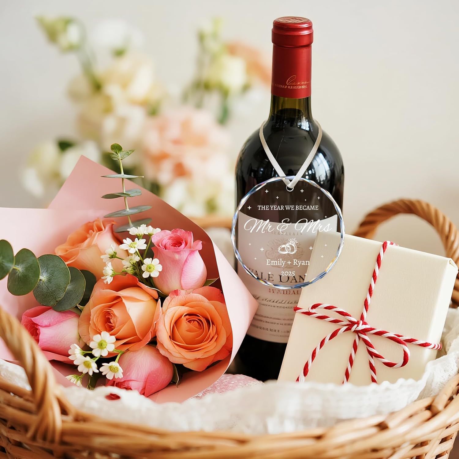 Wedding Gifts for Couples 2025 - Mr and Mrs Ornament 2025 - Bridal Shower Gifts for Bride, Newlywed, Future Mr & Mrs, Her - Just Married Crystal Glass Ornament