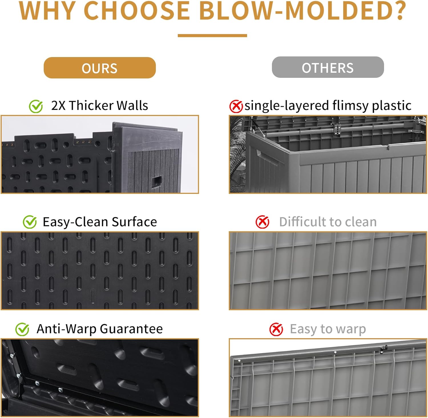 • Massive 230-Gallon Storage Capacity: With a generous 230-gallon interior, this outdoor storage container provides ample space to store patio cushions, garden tools. Keep your backyard, deck, or balcony organized and clutter-free.