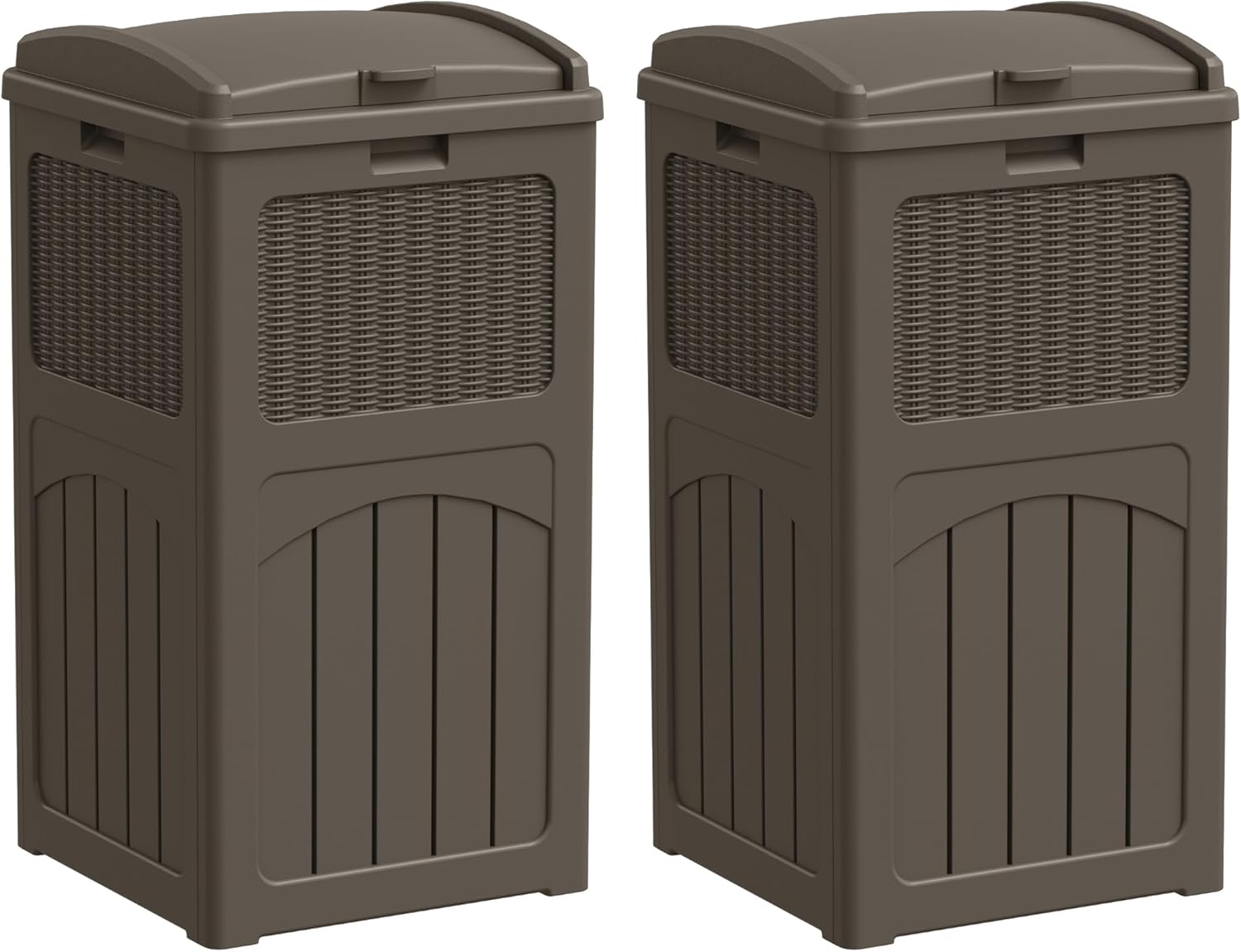 YESHOMY 2 Pack Outdoor Trash Can with Lid, Garbage Bins for Garden, Porch, Home and Kitchen, Brown