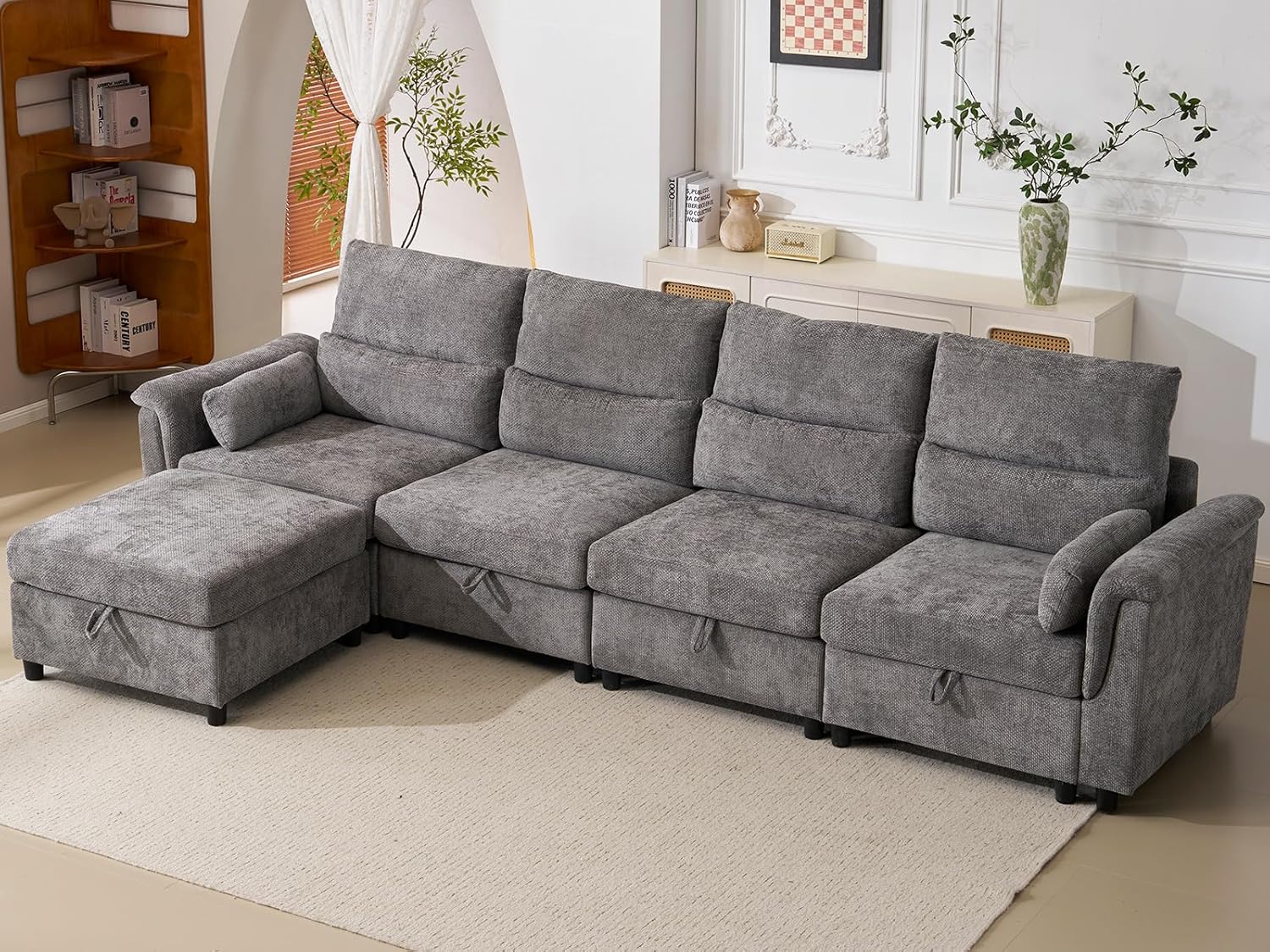 • Large storage space: Each seat of the modular couch is equipped with a spacious storage space, perfect for storing blankets, toys, pillows, and other items. This thoughtful design keeps your living space neat and tidy while maintaining a combination of comfort and functionality.