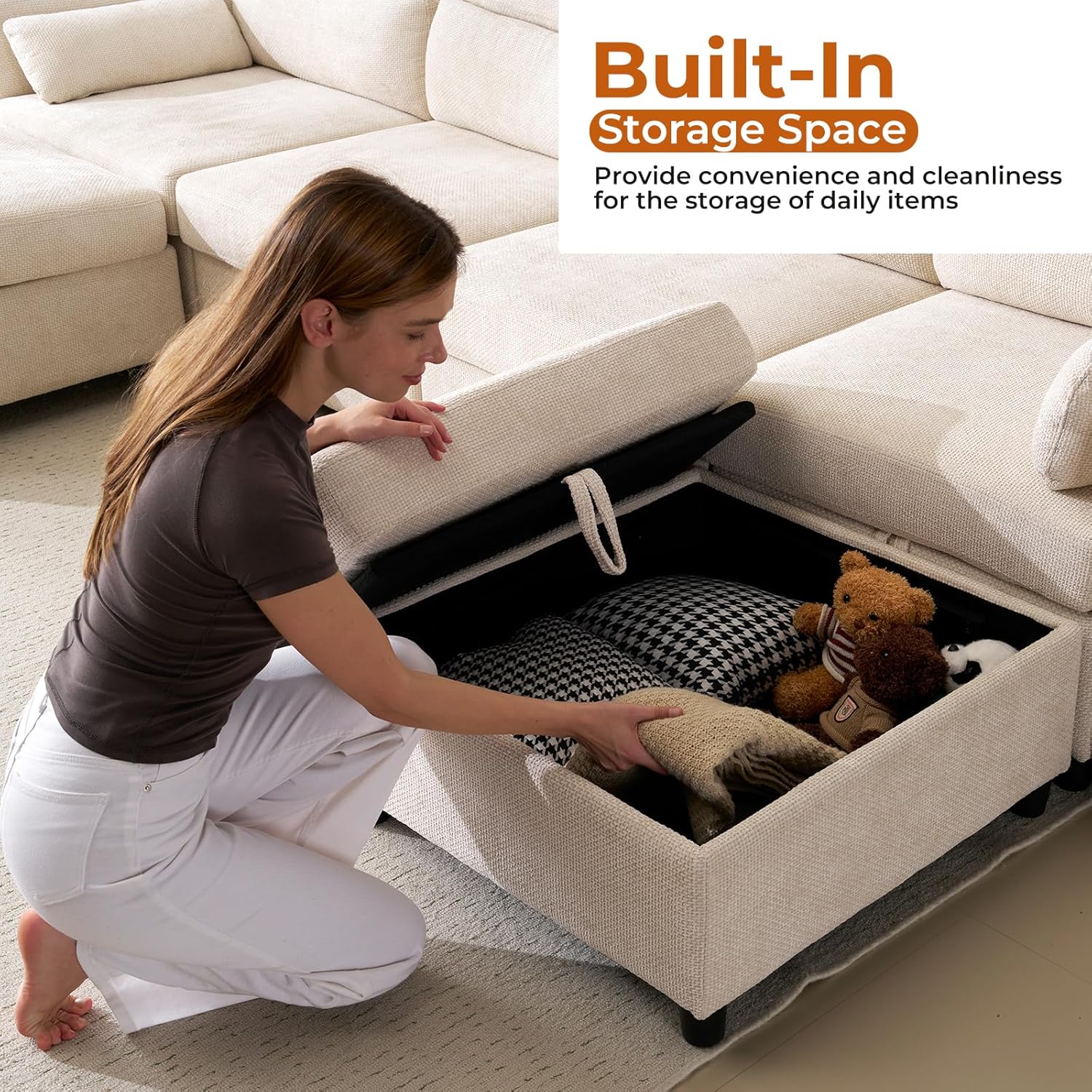 • Large storage space: Each seat of the modular couch is equipped with a spacious storage space, perfect for storing blankets, toys, pillows, and other items. This thoughtful design keeps your living space neat and tidy while maintaining a combination of comfort and functionality.