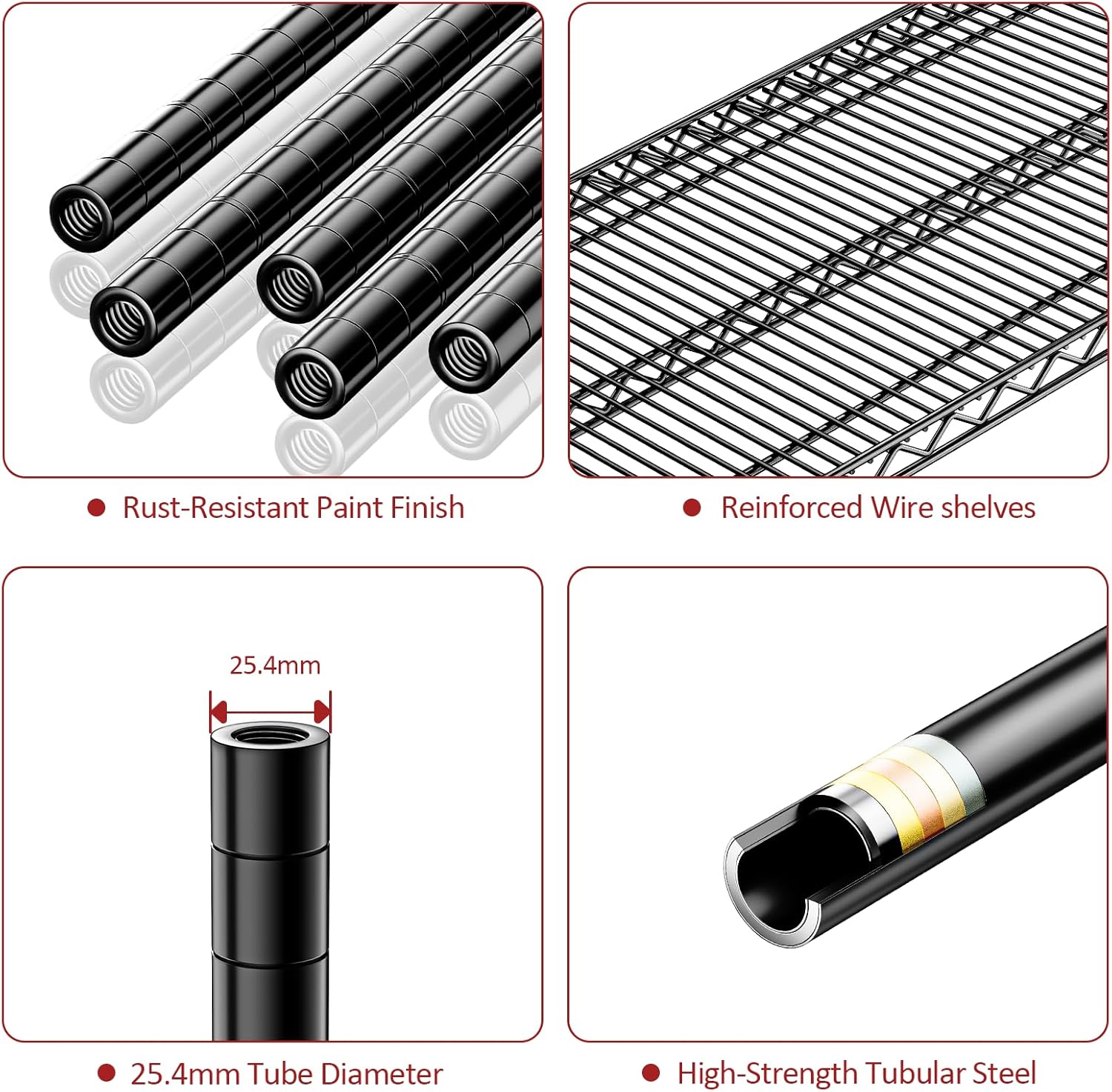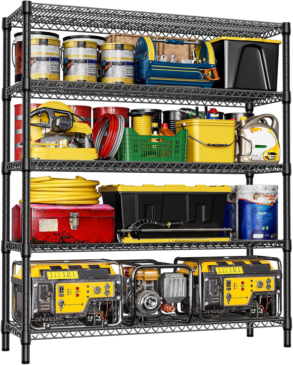 IZEUK 5-Tier Adjustable Heavy Duty Metal Storage Shelving Unit, Wide Utility Rack Organizer for Garage, Basement, Kitchen, Office, Warehouse (Black, 17.7" D x 59.1" W x 70.9" H)