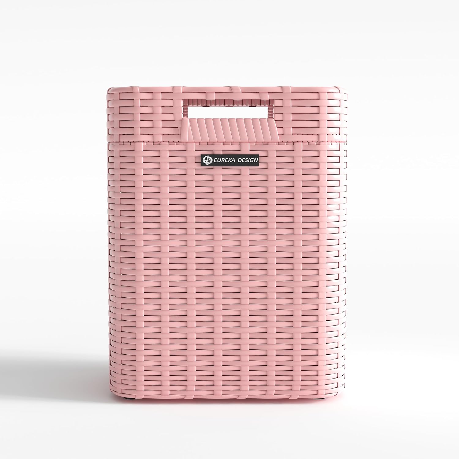 Ypati Handwoven 4 Gallon Rattan Trash Can with Lid, Boho Style Decorative Indoor and Outdoor Trash Bin with Shelf, Waste Basket for Bathroom, Patio, Study, with Trash Bags, Macaron Pink, Eureka