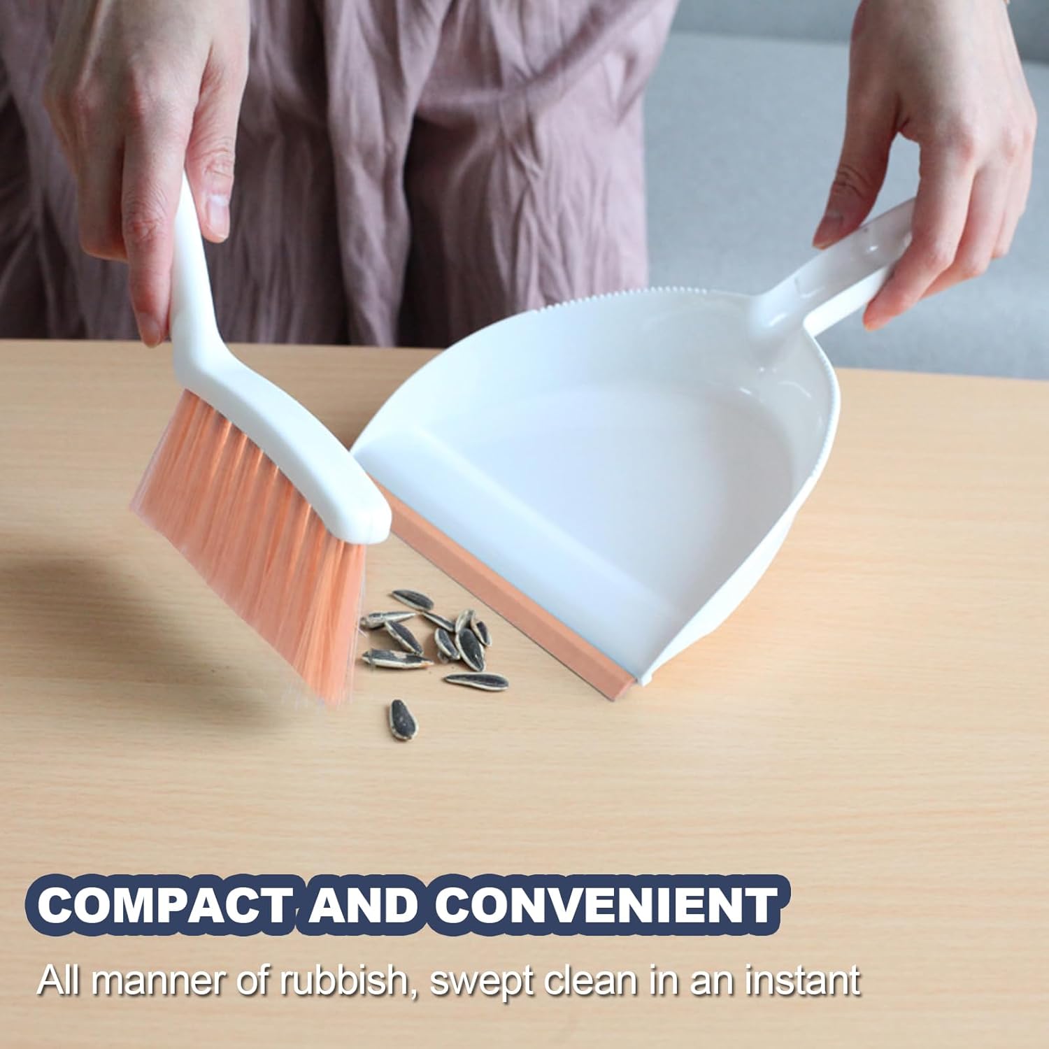 • 【Efficient Cleaning】Crafted from high-quality materials, this dustpan and broom combo is built to last. The dustpan is made of PP material and has an integrated rubber strip at the opening that fits snugly against the floor to prevent dust from falling out. The three rows of soft PET bristles are gentle yet effective, making them ideal for cleaning delicate surfaces such as countertops and furniture.