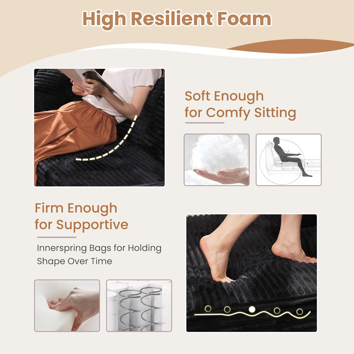 • Cloud Soft Foam: selected one-piece 16.5" extra thick ultra solft high resilient memory foam for great comfy seating, while with supportive inner spring bags inside to keep your posture and keep the couch itself in shape overtime
