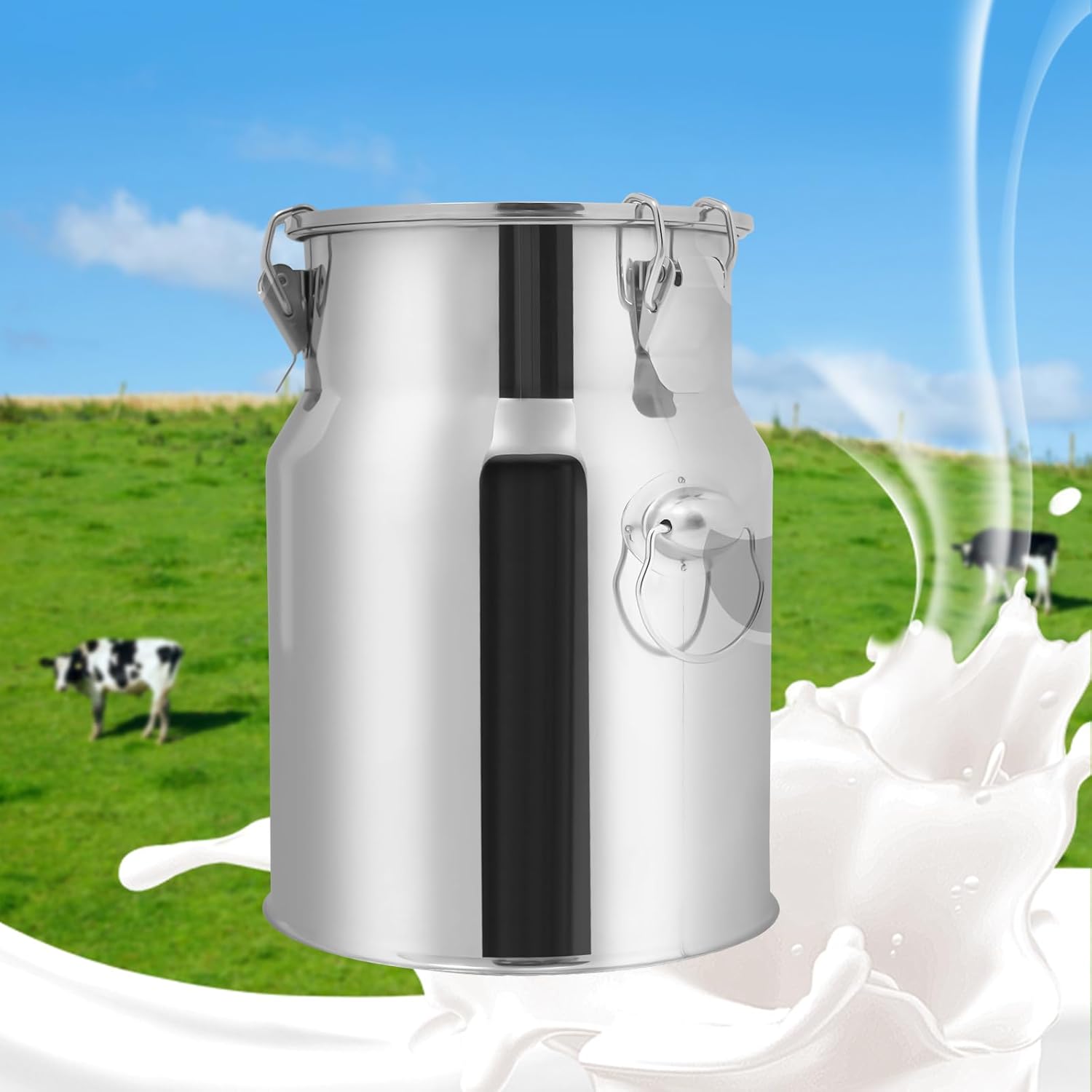 • Milk Can with Sealed Lid - The stainless steel pail is sealed with all-around silicone to ensure no leakage so that people can use it with confidence. The storage bucket is equipped with 3 sealing clips that can hold the lid securely in place, which prevents liquids from spilling during handling.