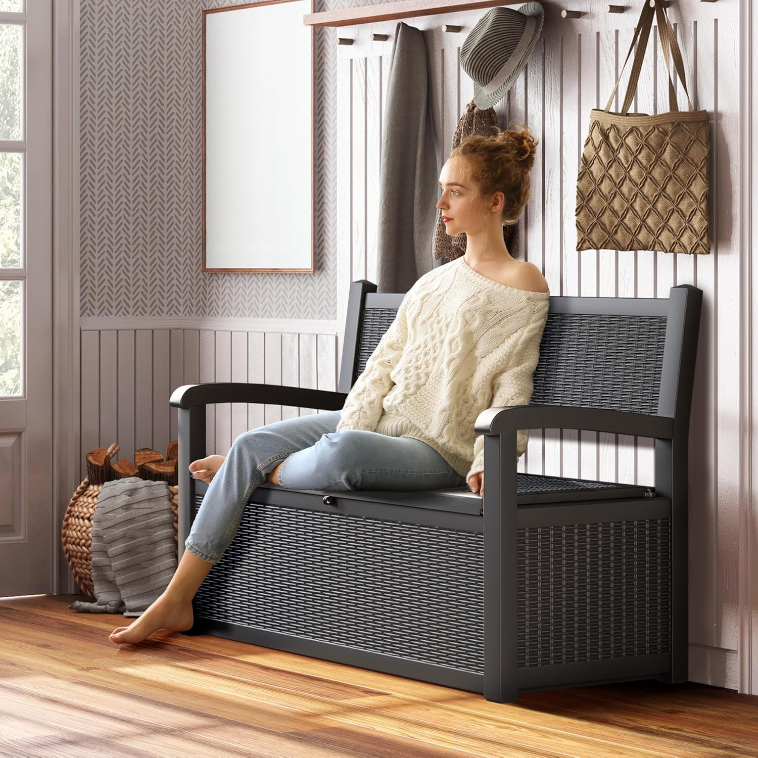 • All-Weather Protection: Crafted from weather-resistant resin, this outdoor bench with withstands sun exposure, moisture, and temperature changes while maintaining its structural integrity season after season, this porch storage stands tough for long-lasting protection.