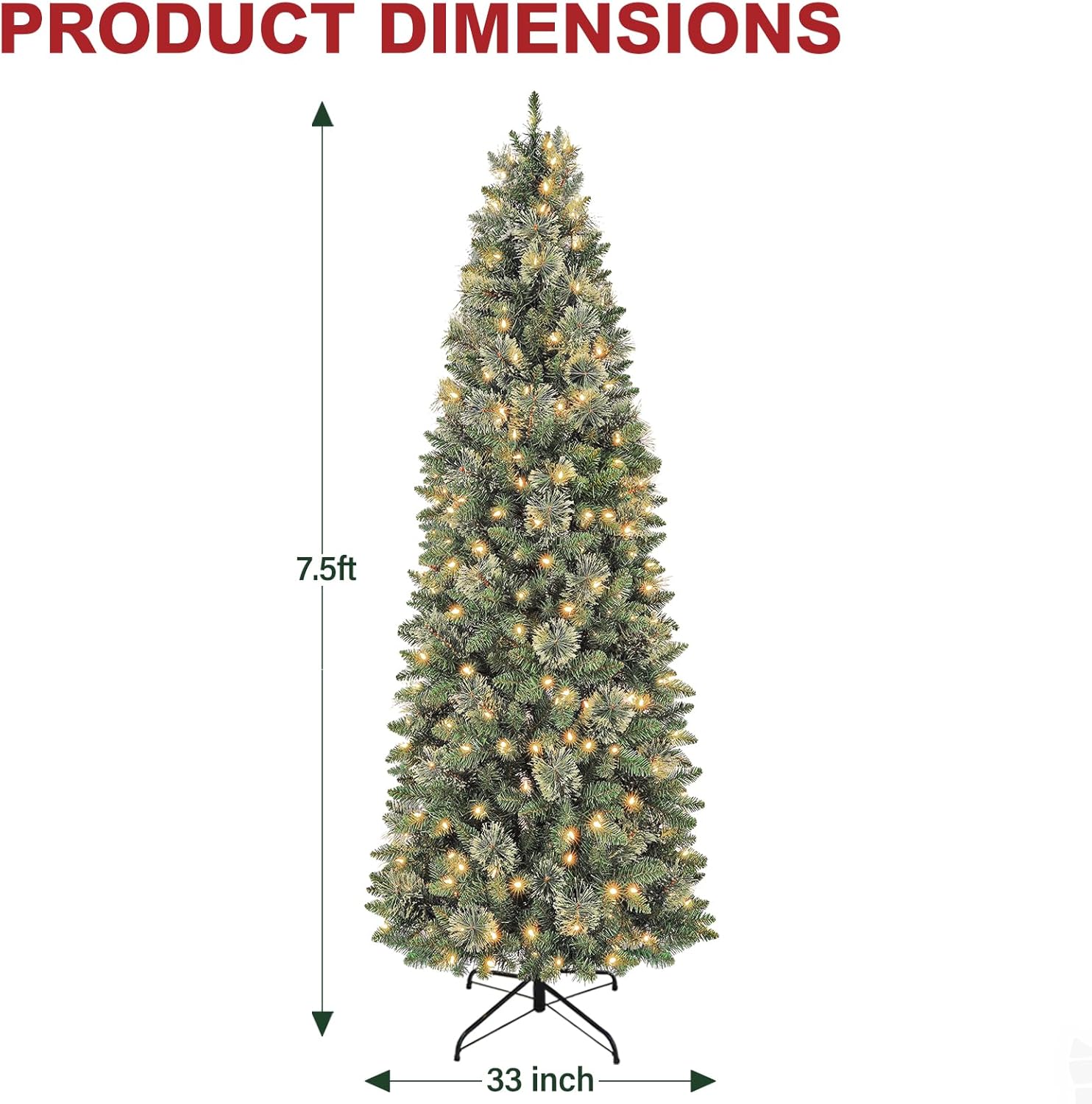 • Easy Setup & Storage​​: Designed for convenience, this 7.5ft prelit pencil tree features a hinged branch system that simplifies assembly: branches snap effortlessly into place around the central pole in minutes. When the season ends, simply fold the branches back onto the pole for compact, space-saving storage.