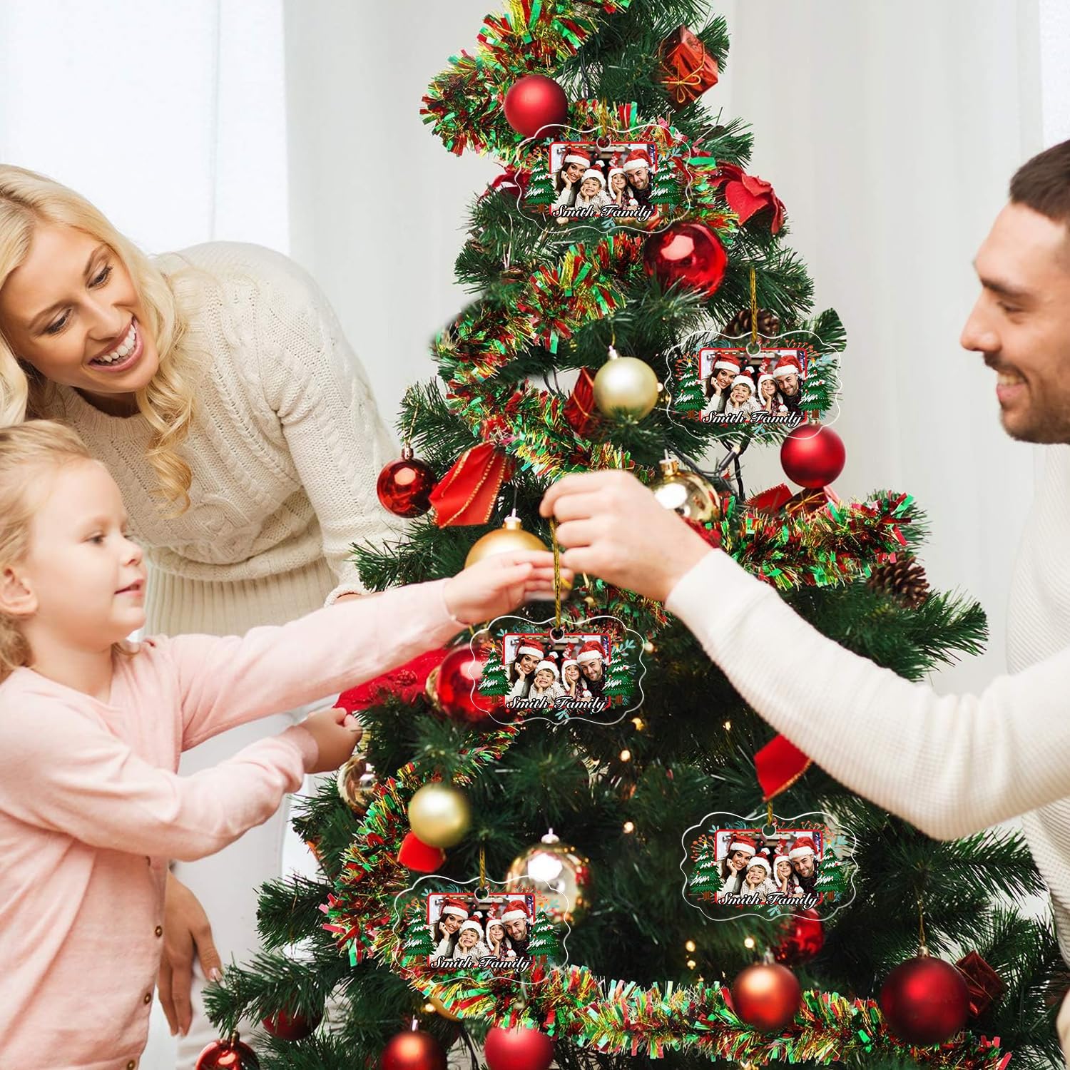 • 🎄Personalized Crystal Photo Ornaments --- Let your special memories live forever! You can add photo of yourself with your family, friends, or anyone close to you, along with any text you desire, to the crystal pendant, and we will customize it specifically for you.