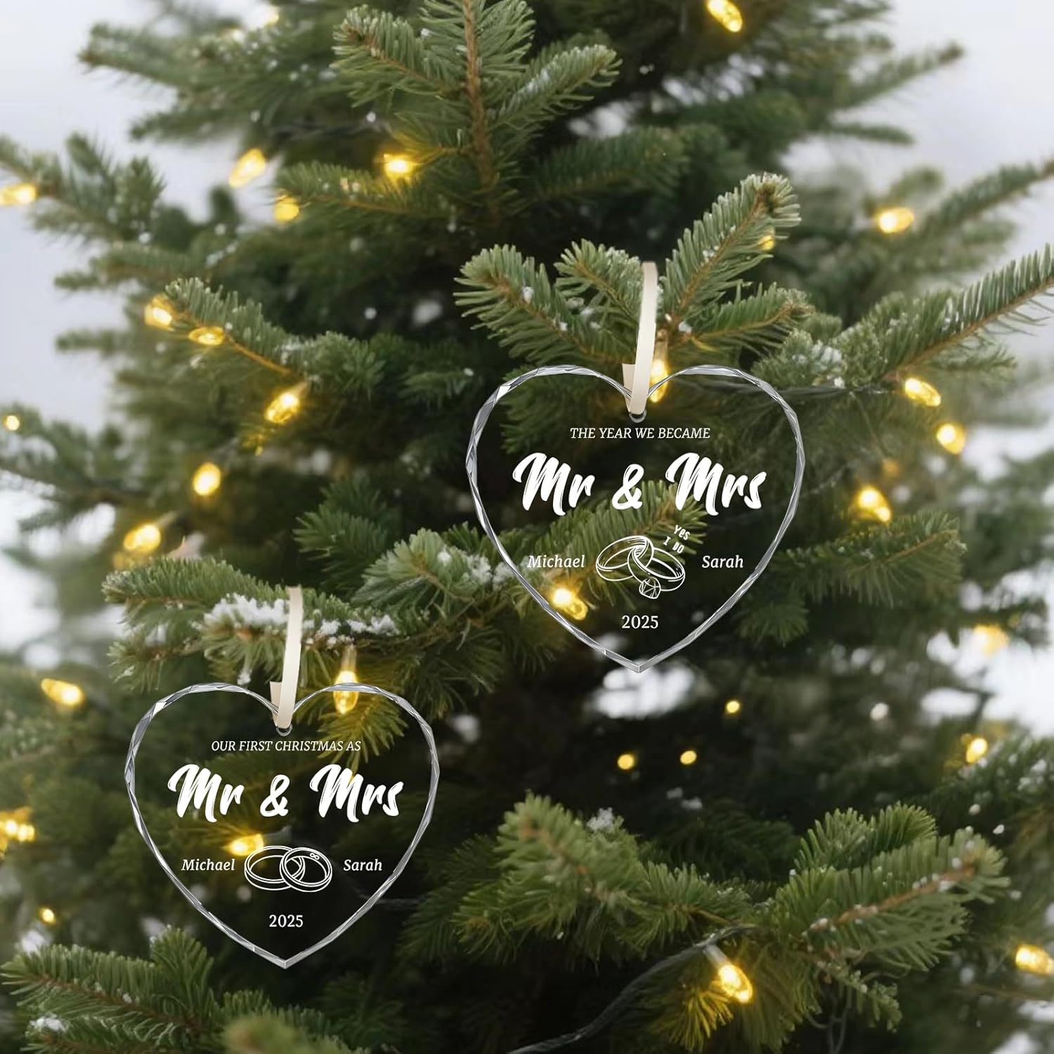First Christmas Married Ornament 2025, Custom Wedding Crystal Glass Ornament with Photo, Name or Date, Personalized Wedding or Bridal Shower Gifts for Newlyweds