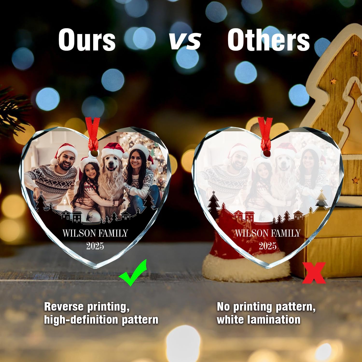 • 🎄Unique Double-Sided Printing --- Ordinary crystal pendants are printed on one side, with only one side having your customized photo and text. Our crystal pendants are printed on both sides, with patterns and text no matter which side you look at them from.