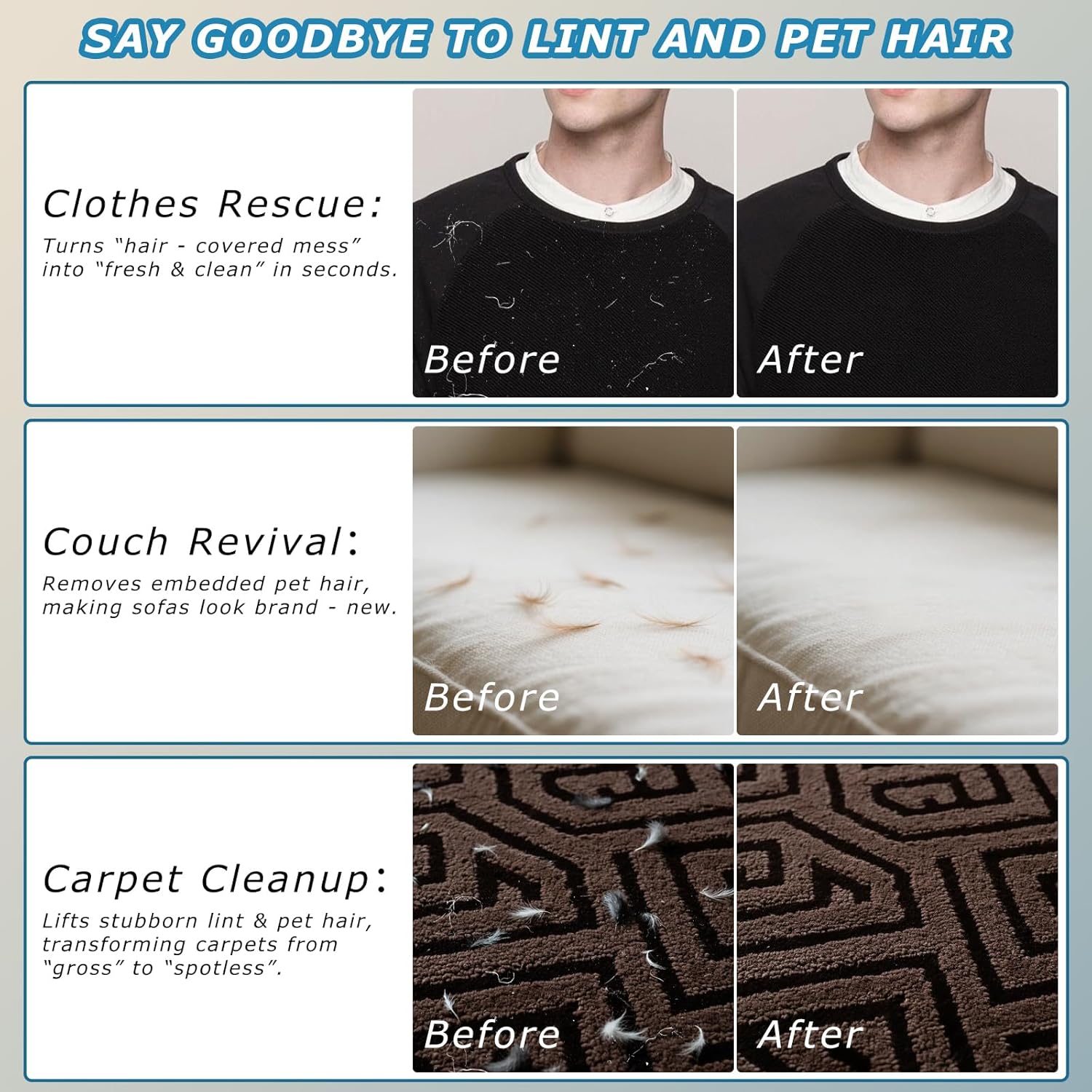 • DUAL-ACTION CLEANING & GROOMING:More than just a household fur remover, it's also a gentle deshedding glove for your pets. Use during brushing sessions to capture loose hair directly from your dog or cat's coat, helping reduce future shedding around the house while promoting a healthier bond with your pet.