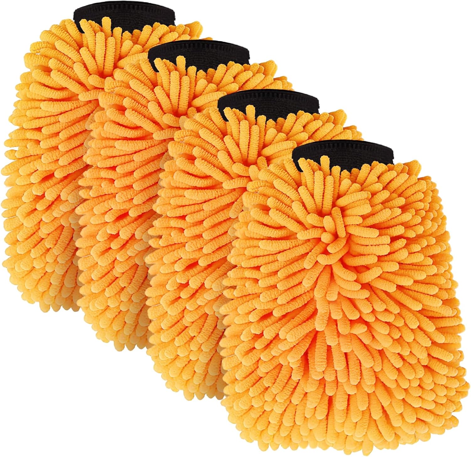 4 Pack Car Wash Mitt Microfiber, Premium Chenille Microfiber Wash Car Mitts Sponge Scratch Free & Lint-Free, Mitts Waterproof Lining Orange (8''X12'')