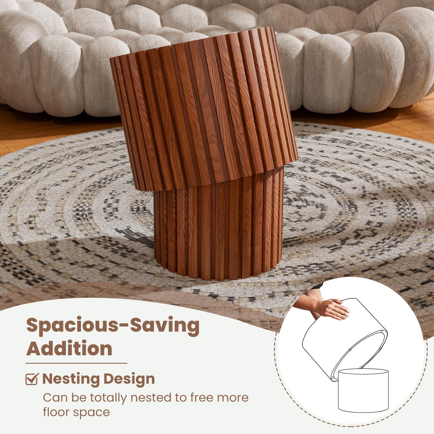 WXFKLDJ Round Nesting Coffee Table Set Cylindrical Wooden Coffee Table Sofa Center Table Circle Embossed Design Side Table for Living Room Apartment No Assembly (Striped Brown Small)