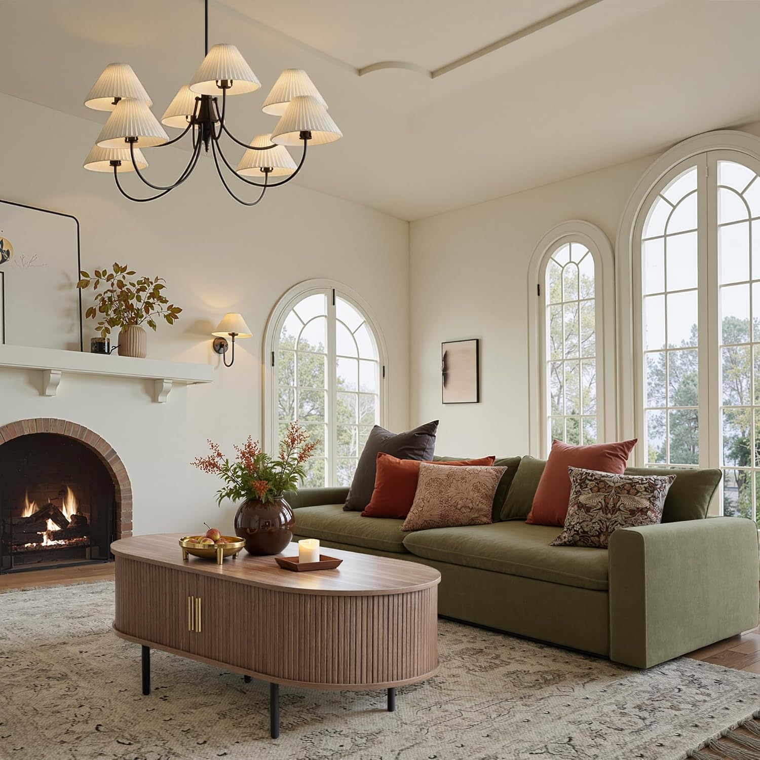 • [A Fluted Oval Coffee Table with Midcentury Charm] This 47.2-inch mid-century coffee table blends retro elegance with a modern touch. Featuring a graceful oval silhouette, warm wood tones, and refined fluted accents, it serves as a stylish center table for any apartment, lounge, or bedroom. As a wooden coffee table, it offers both visual charm and practical storage—making it a modern coffee table for everyday living