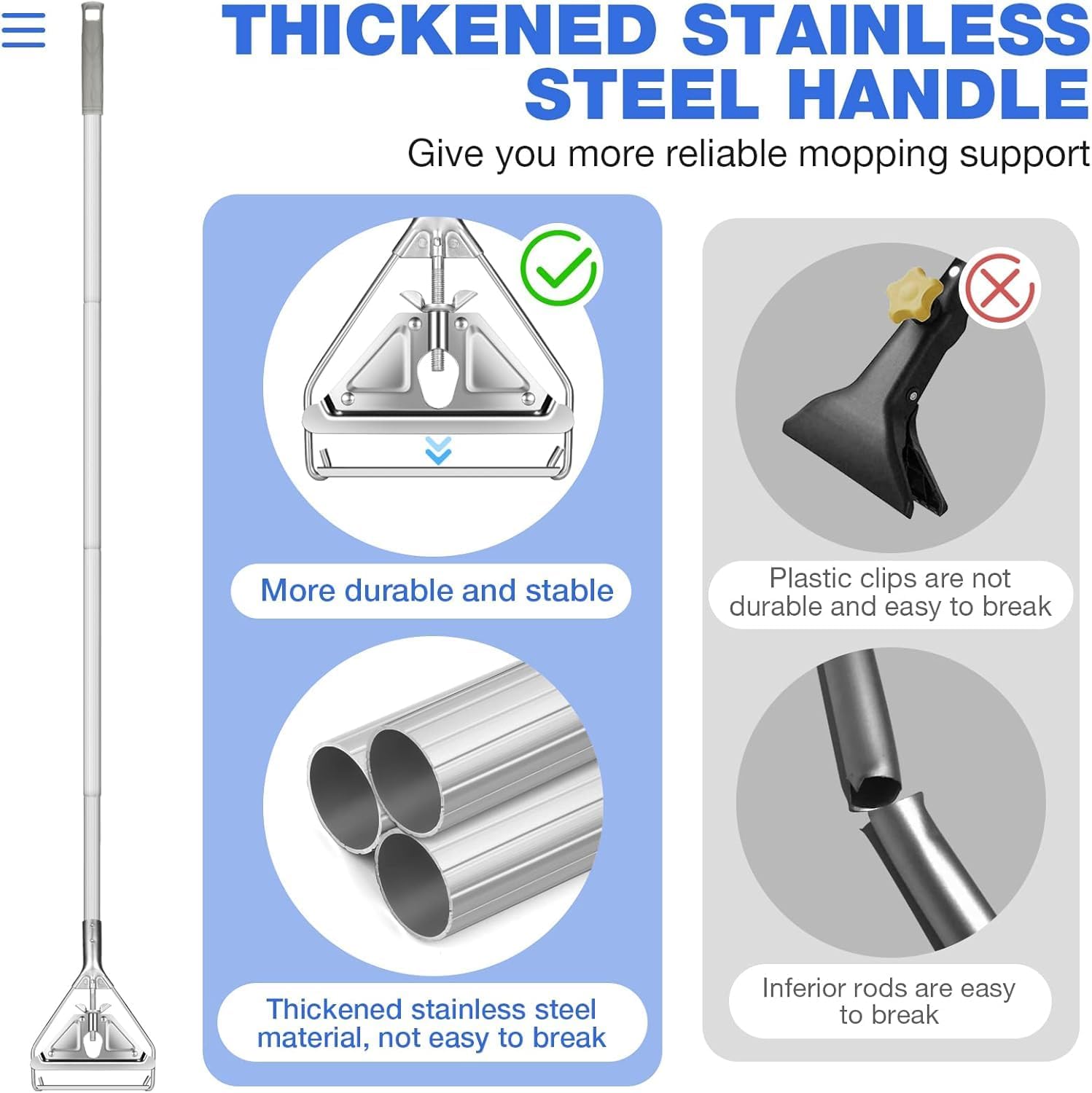 • 【Premium mop handle 】Commercial mop stick replacement is made of thick stainless steel, which is more stable. Don't worry about the handle being bent or broken due to pressure during use.