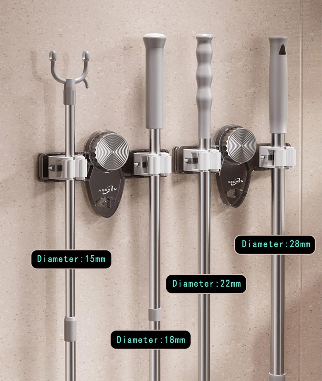 • Anti Slip Sesign: Anti slip roller clip, firmly clamped and not easy to fall off, easy to pick up and put with one hand, suitable for organizing the handle size of most cleaning supplies, with a maximum diameter of 1.2 inches, such as mops, brooms, rakes, shovels and other tools