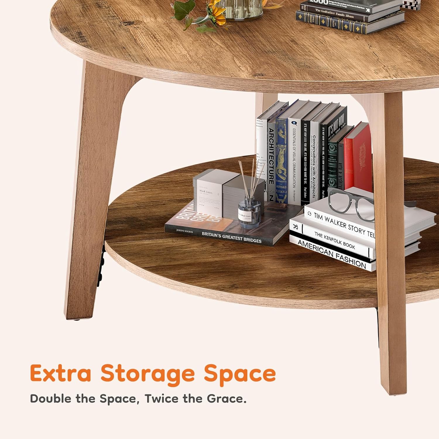 • Large 2-Tier Storage Space: Featuring a wide 31.5'' diameter tabletop and a 26.4'' lower shelf, this round coffee table provides generous space for everything from coffee mugs and snacks to magazines and decorative accents. The two-tier design helps you keep the living room tidy while displaying your style.