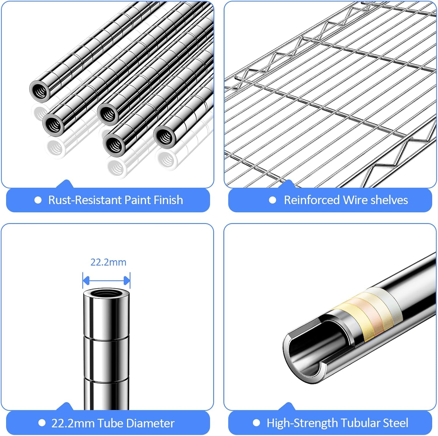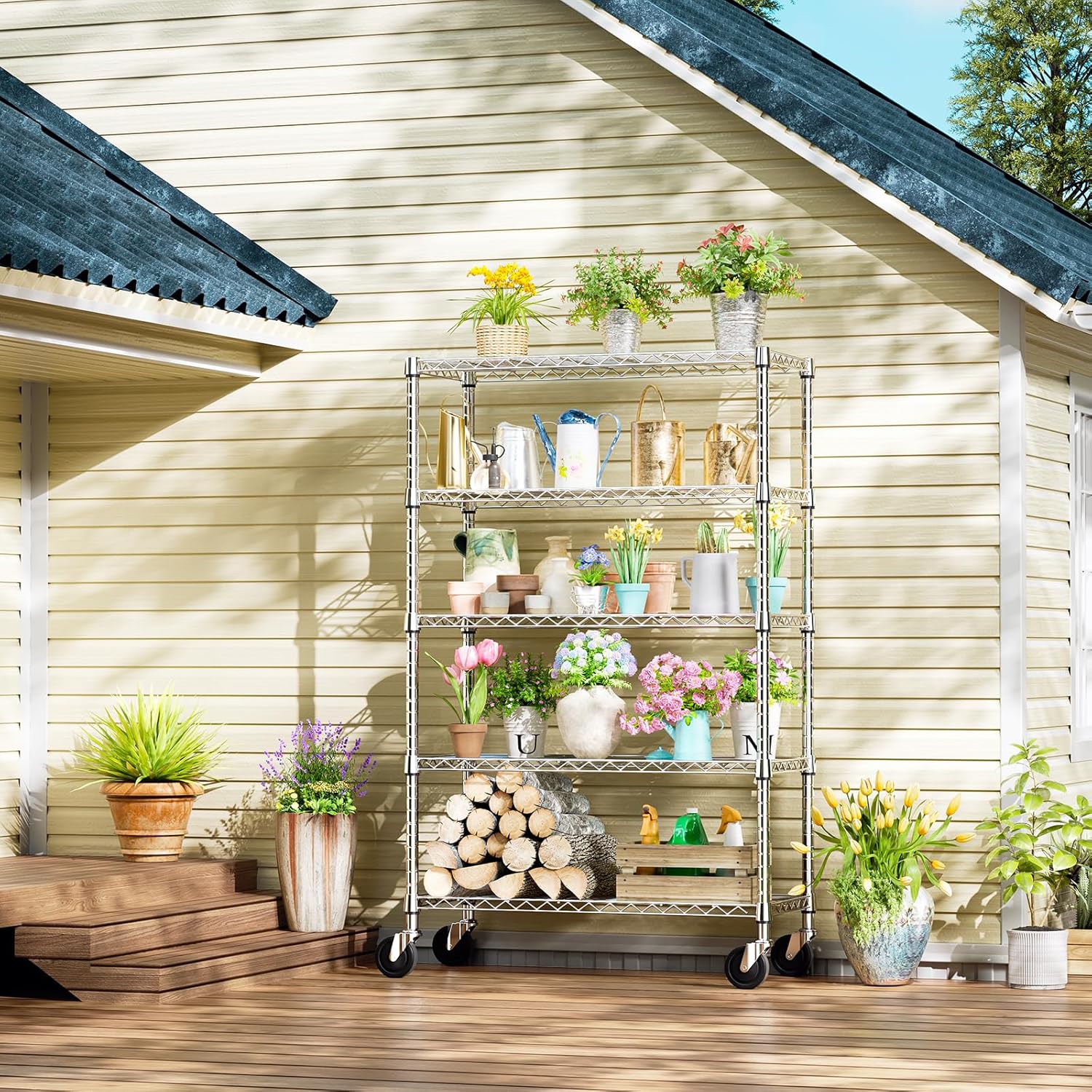 IZEUK 5-Tier Storage Shelving Unit with Wheels, Adjustable Heavy Duty Steel Wire Rack Organizer (Chrome, 17.7" D x 47.2" W x 76.7" H, 1750 lbs Capacity) for Garage, Kitchen, Pantry, Laundry, Basement