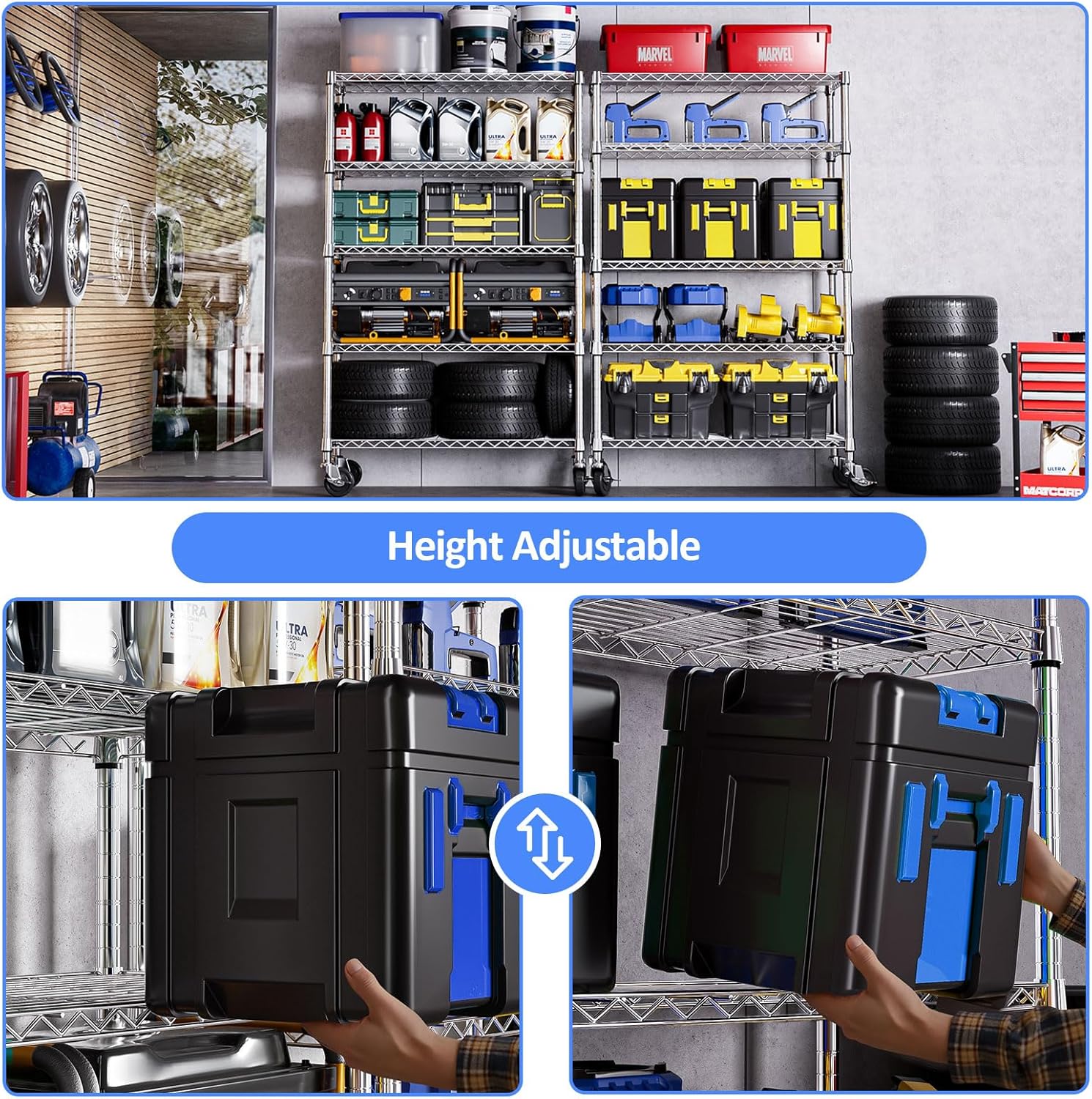 • 【Adjustable Shelves & 360° Lockable Wheels】Customize the height of each shelf in 1-inch increments to fit everything from large appliances to small bins. Equipped with 4 smooth-rolling 360° caster wheels (2 with locks), this unit offers maximum mobility and stability—effortlessly move it around your home, garage, or office, and lock it in place when needed.