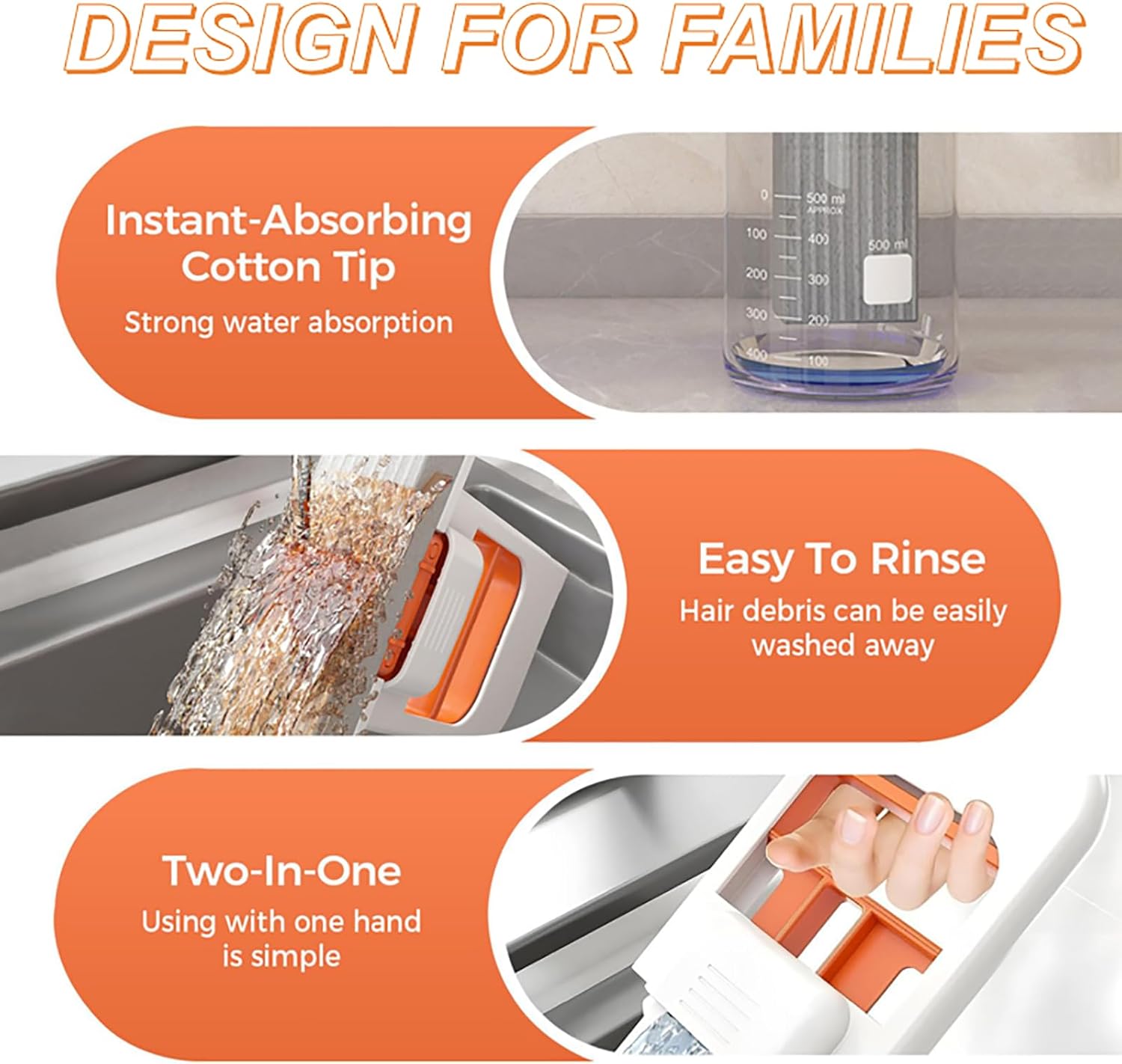 • Quick-Absorbing & Easy Wringing: Featuring a self-squeeze mechanism, this mini mop allows effortless wringing with just one touch—no wet hands or messy drips! The sponge mop head absorbs spills instantly, making it the perfect household sponge mop for quick cleanups.