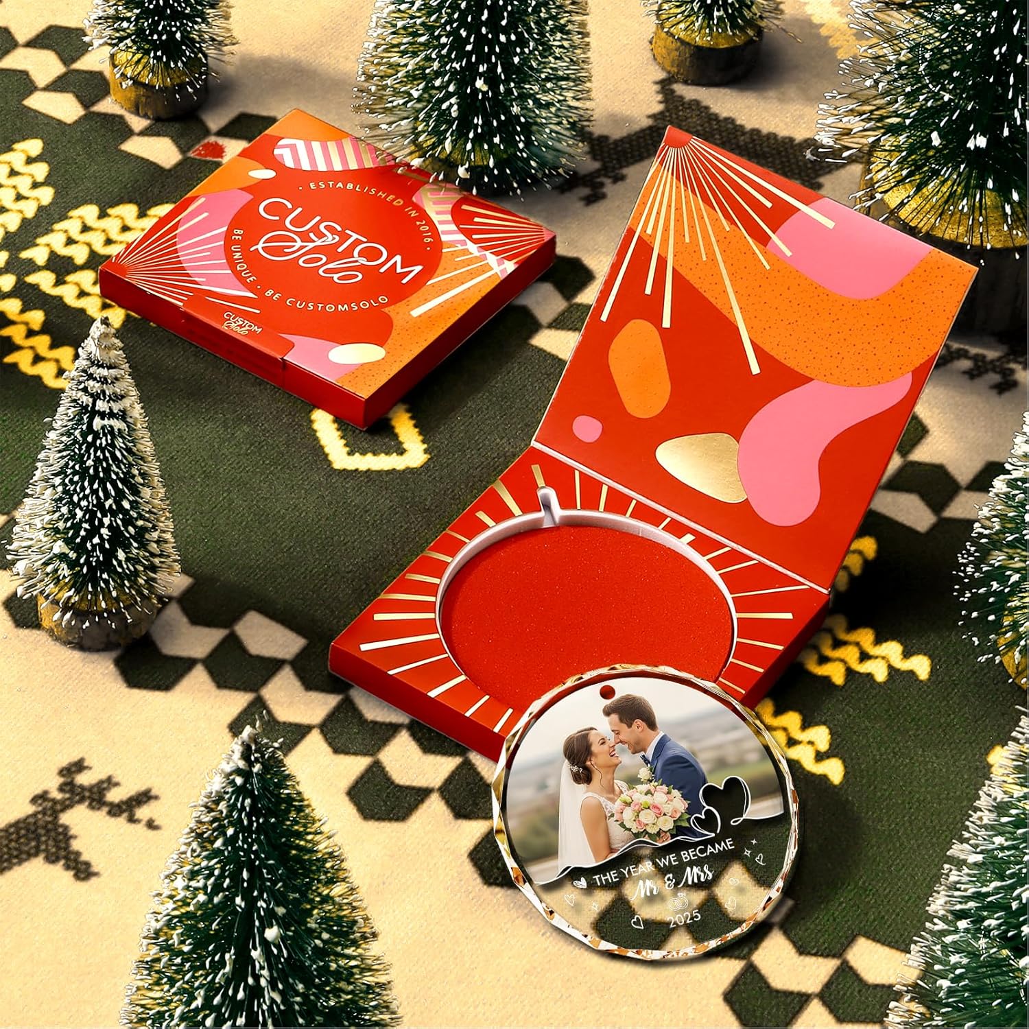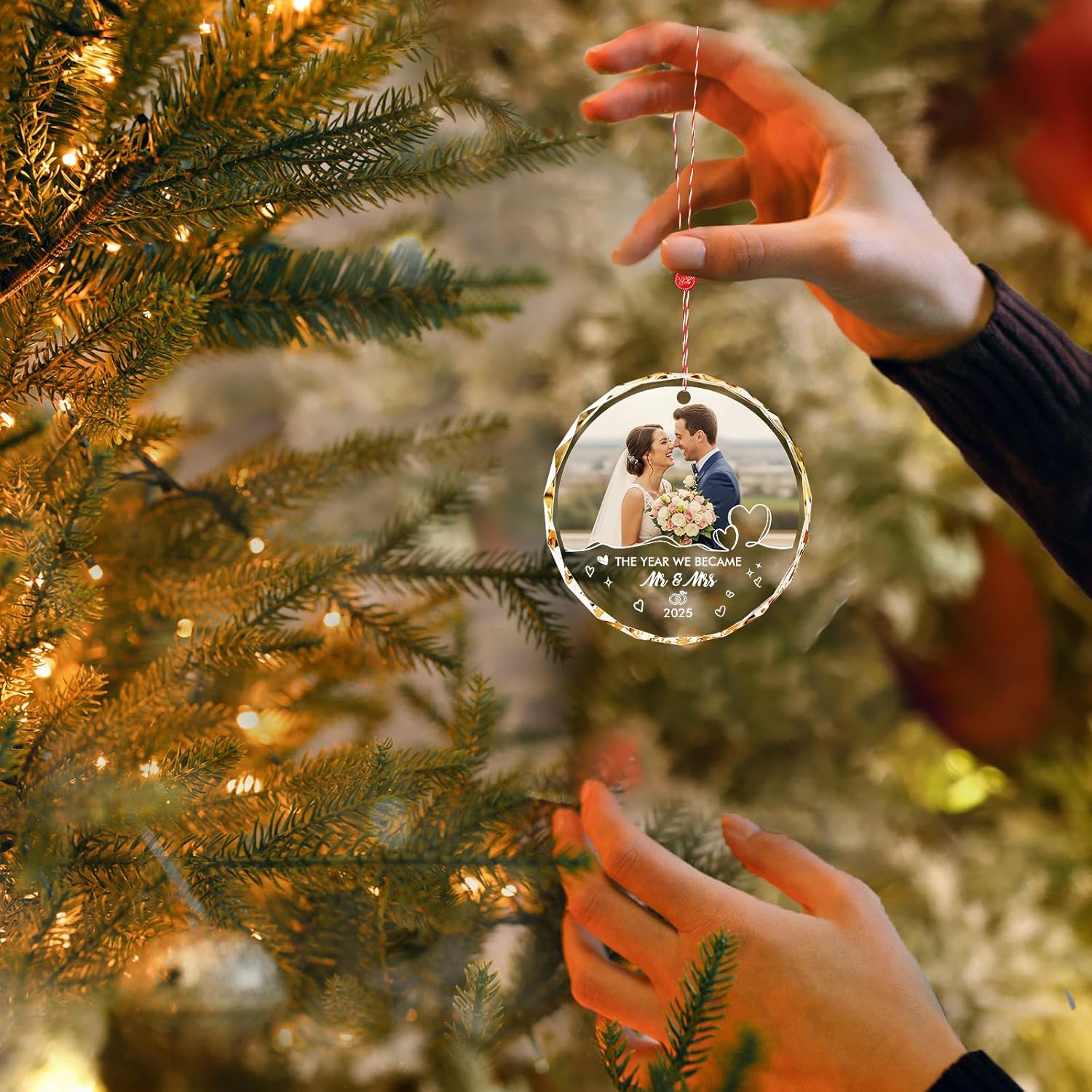 • 🌟 Personalized Just for You – Upload a favorite photo from your big day and add your names or wedding date. Each ornament is custom-made, turning your love story into a one-of-a-kind Christmas treasure
