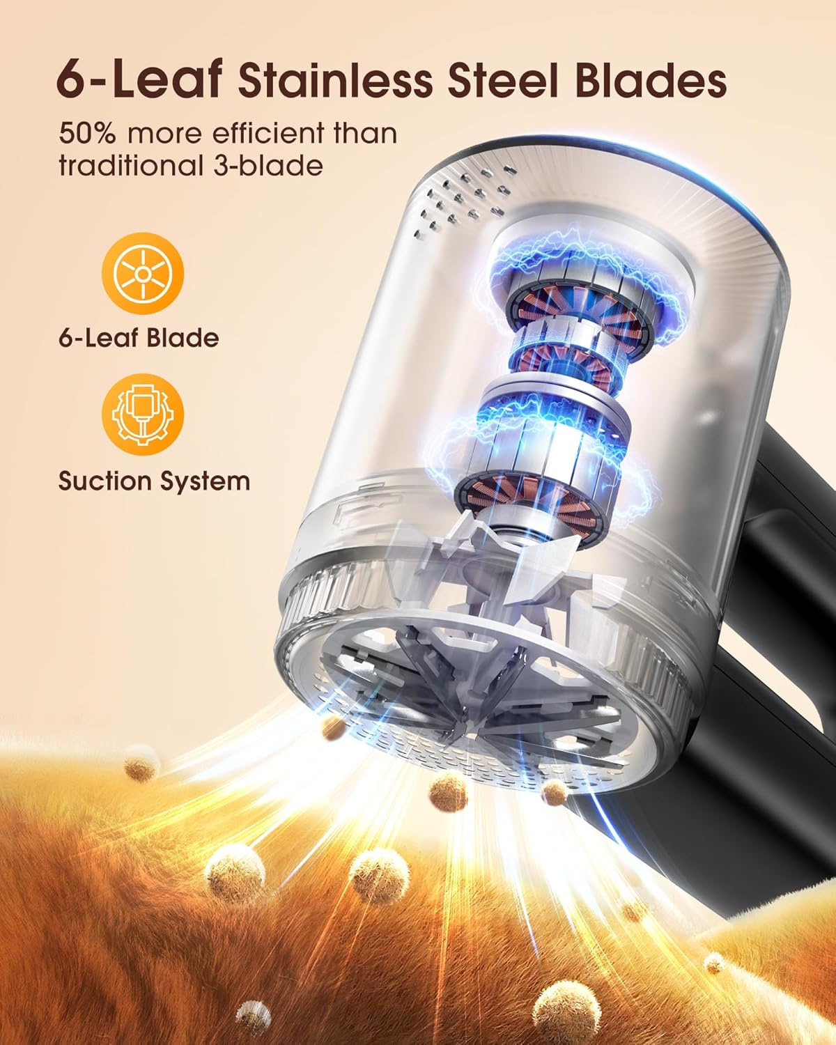 • 【Innovative Upgraded 6 Leaf Blades】lint remover fabric pilling remover upgraded 6 Leaf Blades, razor-sharp, double cleaning efficiency compared to the 3-blade cutter head, with 3 speeds suction system to cater to different fabric shaver for clothing