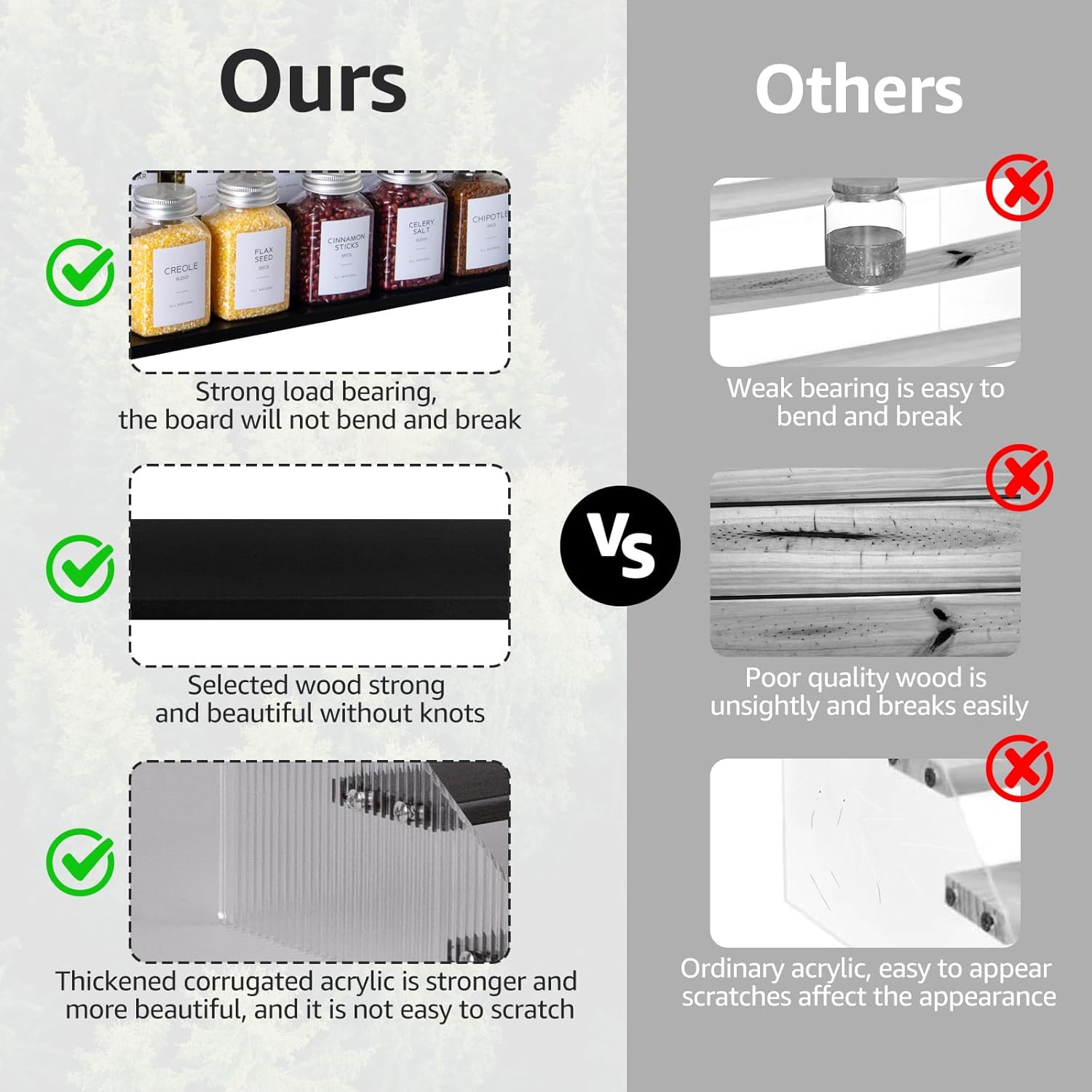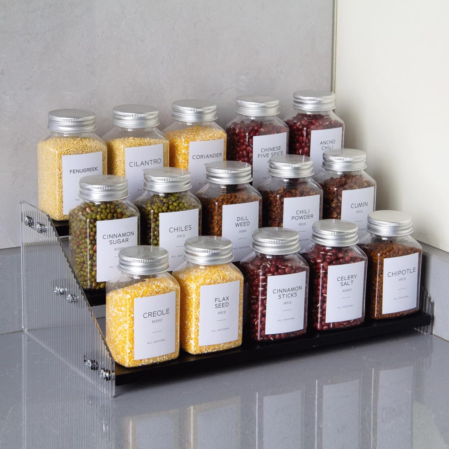 • Elegant & Sturdy: Risers display stands constructed from high-quality pine wood and corrugated acrylic, making it both aesthetically pleasing and fashionable, as well as durable and resistant to deformation, the spice shelf is a beautiful and robust addition to any space