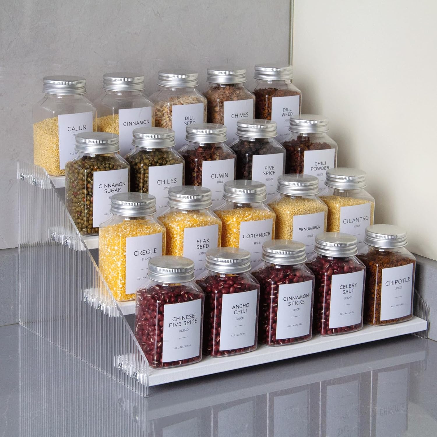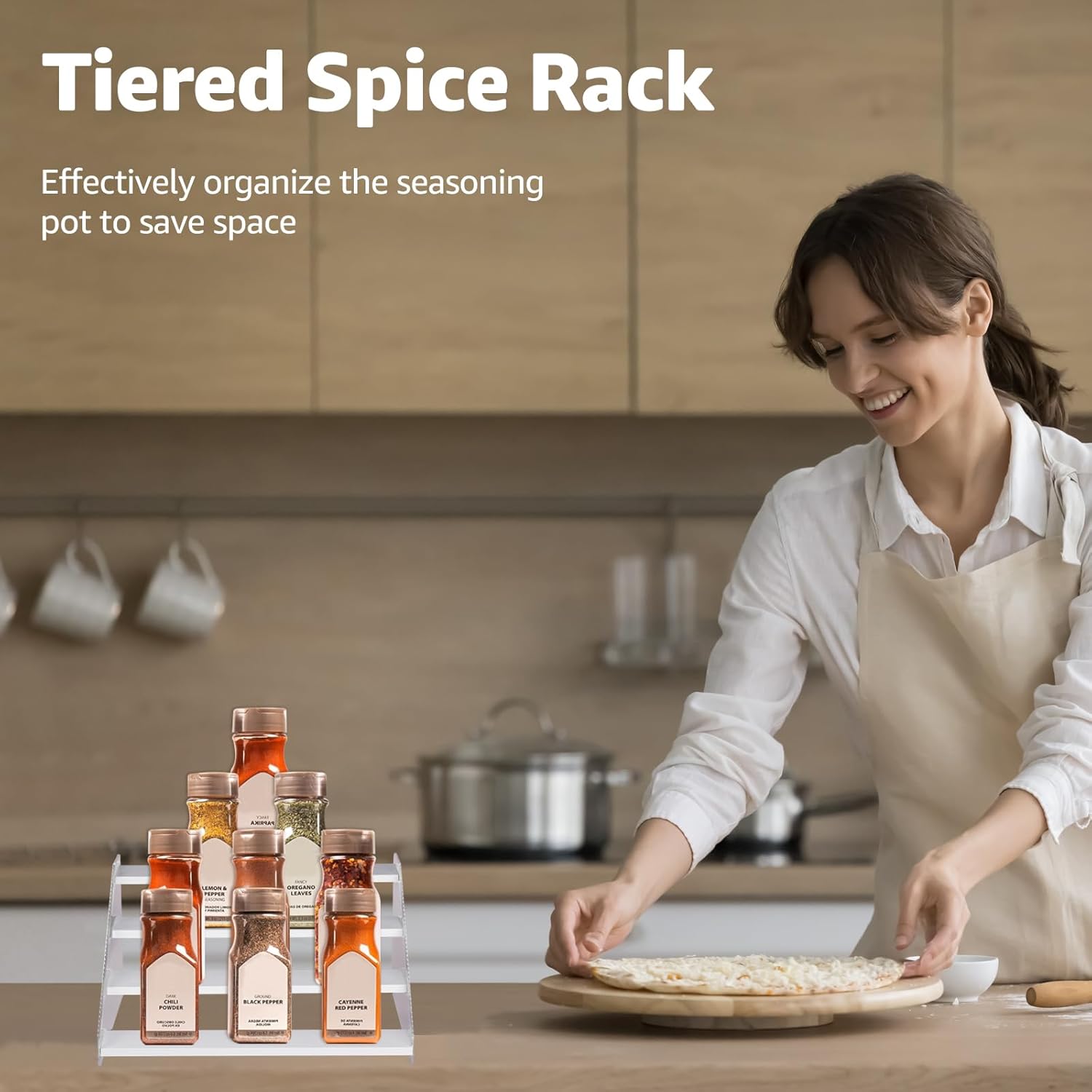 • Elegant & Sturdy: Risers display stands constructed from high-quality pine wood and corrugated acrylic, making it both aesthetically pleasing and fashionable, as well as durable and resistant to deformation, the spice shelf is a beautiful and robust addition to any space
